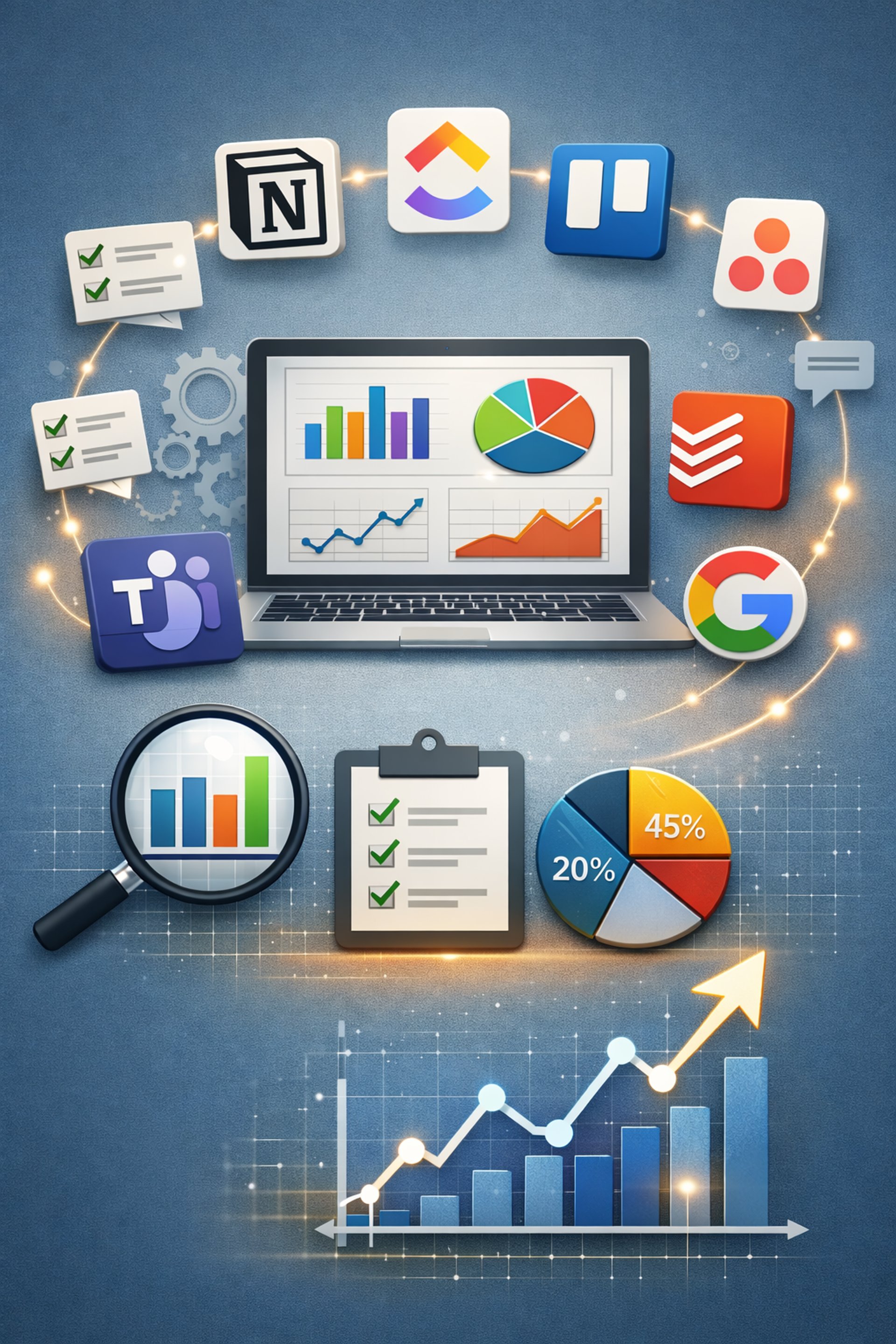 Modern productivity tools like Notion, ClickUp, Trello, Asana, Todoist, Microsoft Teams, Google Workspace, and Lark Suite can dramatically improve how you organize work, collaborate, and track progress—especially when you combine them with basic data analytics to see what’s actually working.